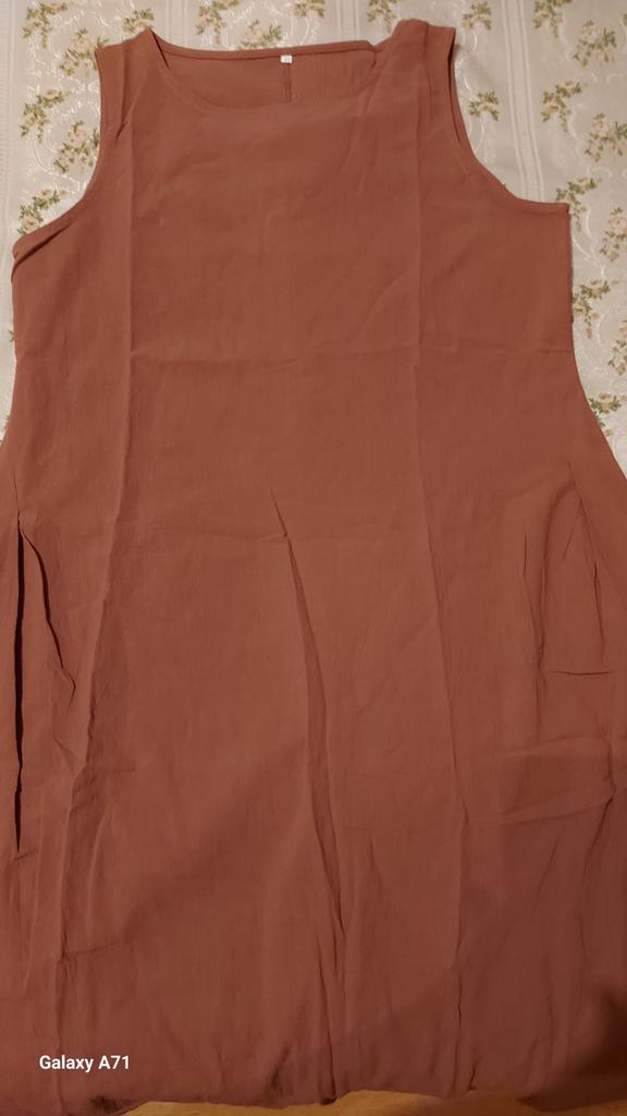 Very pretty dress. It wasn't tracked, I thought I wouldn't get it. The size fit my 52-54 as well as ever. The fabric is cotton. Thank you very much.