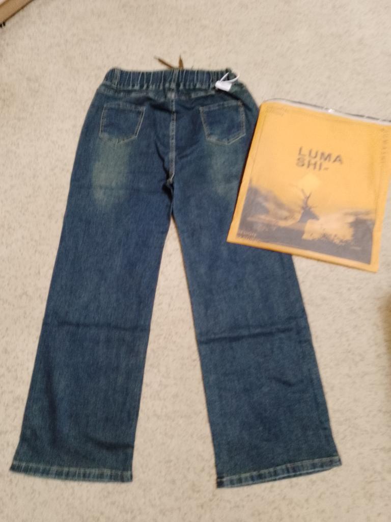 Spring and Autumn Women's High Waist Elastic Waist Straight Jeans
