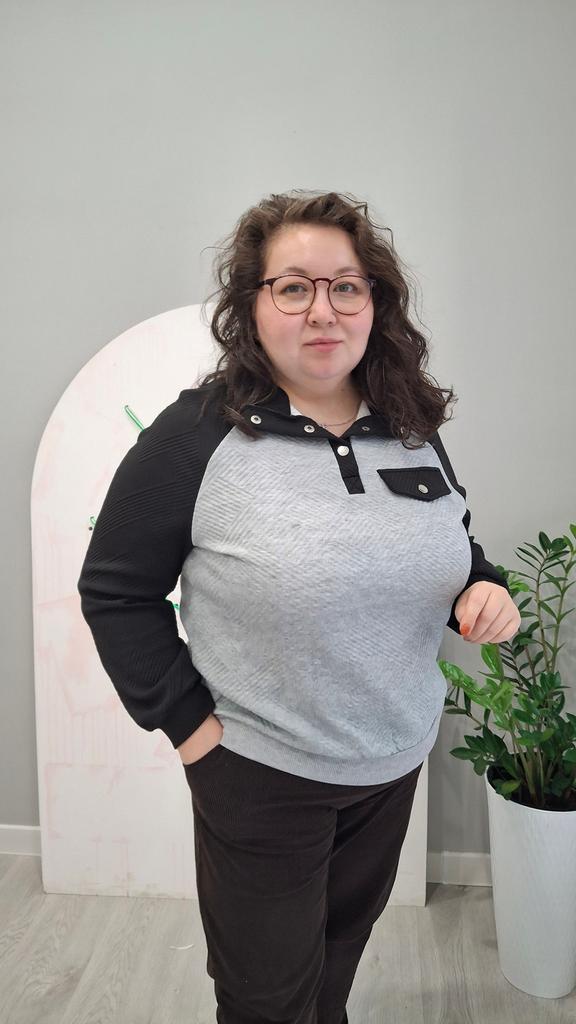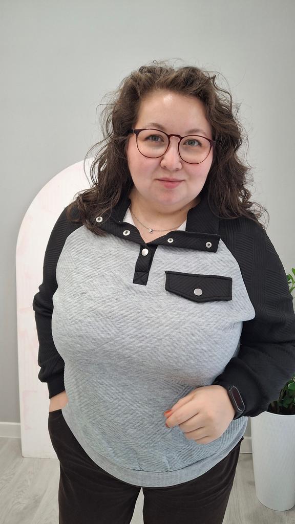🛍️ Oversized Sweatshirt with Collar for Women🛍️ ✨This shirt looks so beautiful and has a special style and it's comfortable on the body and I loved it very much!🤩 ✨The shirt is big and wide with a stand-up collar and buttons, long sleeves with a soft and flexible cuff. The shirt has a pattern of a pocket on the front that I really like. ✨Sizes S-XL can be ordered ✨Suitable for the season: Autumn, Winter ✨I chose size M and in black-gray I received them exactly in the size and color I wanted. ✨Can be ordered in black grey ✨The product arrived with fast and protected delivery. Was the review helpful to you? Like and follow me for more reviews.