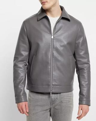 Genuine Soft Lambskin Leather Grey Men's Jacket Bomber Handmade Biker Motorcycle