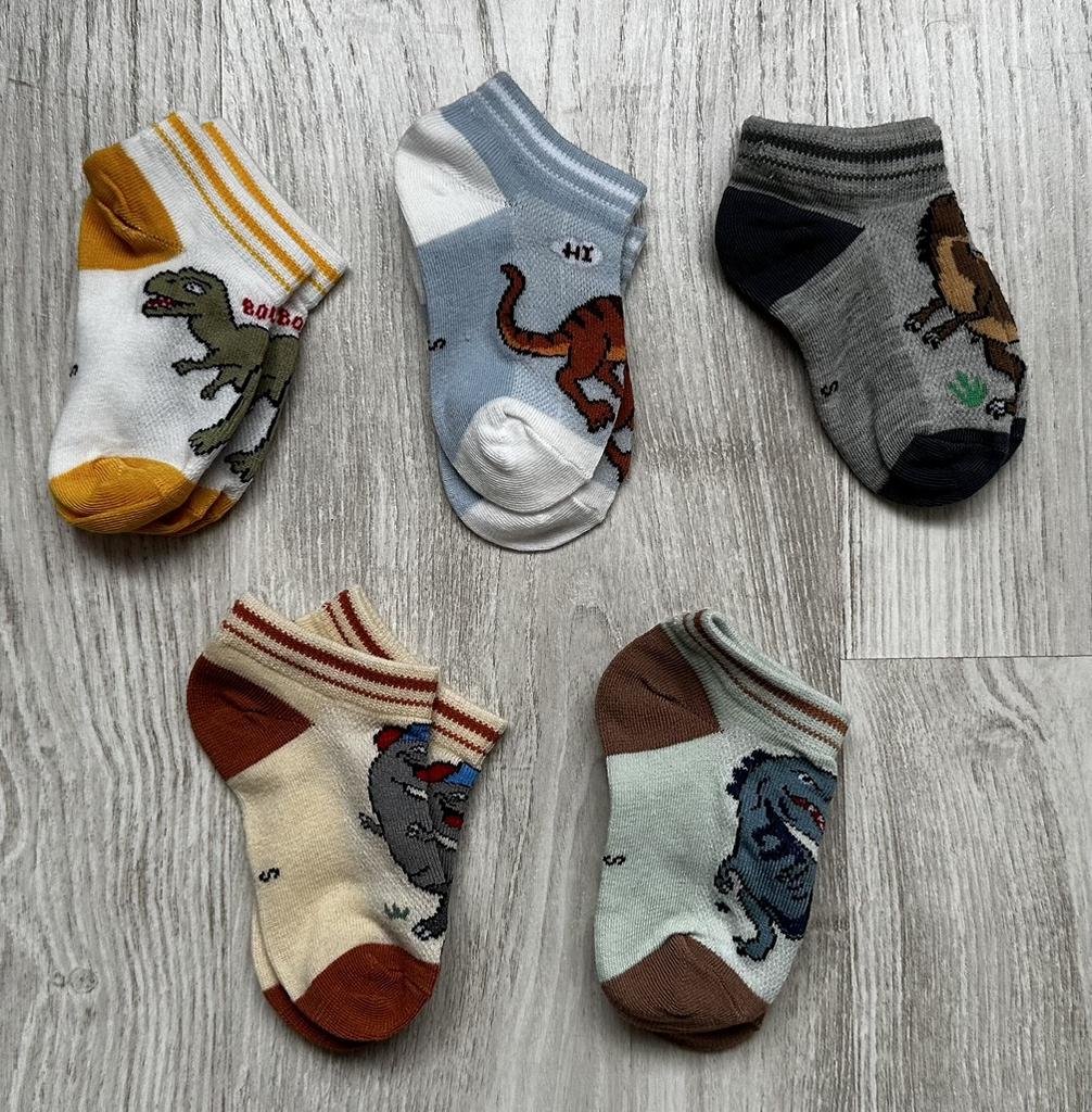 5 Pairs Boy's Dinosaur Pattern Socks Comfortable Breathable Casual Soft Kids Socks