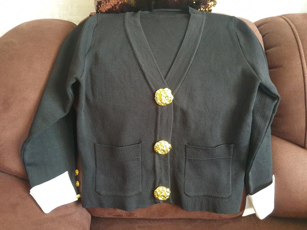 A good classic black cardigan. High-quality knitwear, neatly sewn. But the cuffs are not as in the photo, the sleeve is made differently, and there are not 4 buttons on the sleeve, but 3.