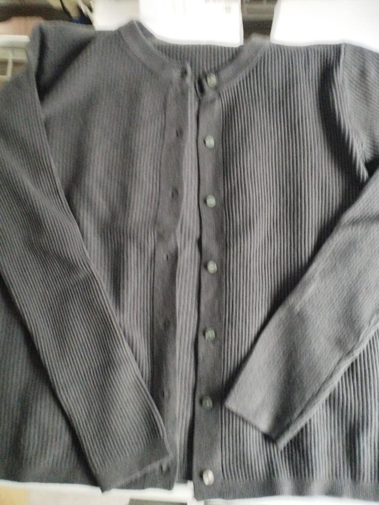 The blouse is as described, fine rib, with buttons, soft, stretchy, just what I needed. But without labels and tags with the size. XXL fit me for my 50. Just how it will wear..