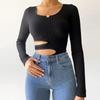 Women's Autumn Fashion Slim Fit Solid Color Round Neck Hollow Out Long Sleeved Jumpsuit