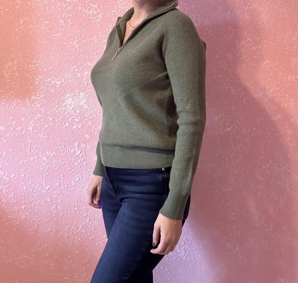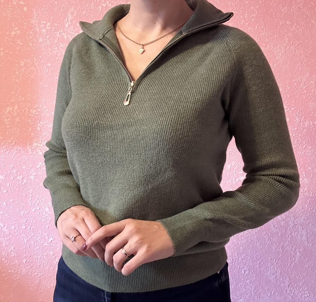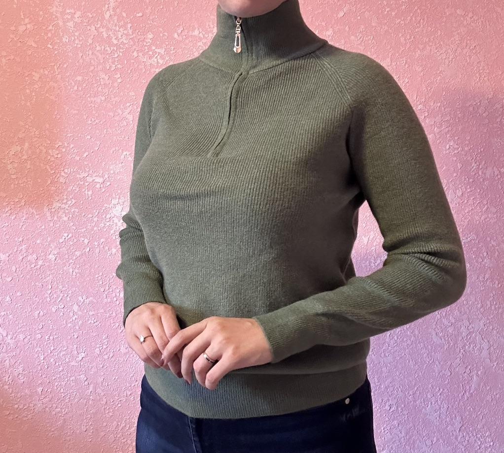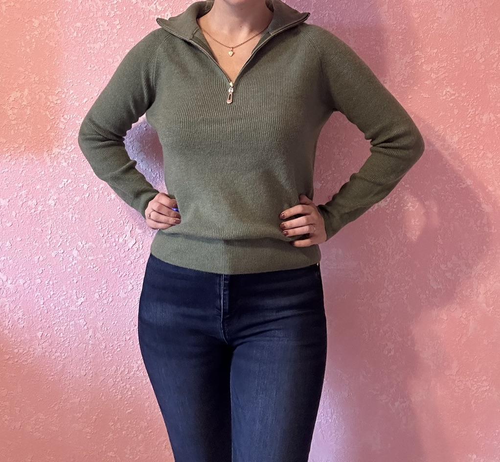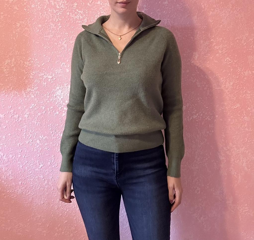 Women's Autumn and Winter Casual Solid Colour Long Sleeve Knit Zip Pullover Sweater