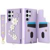 New 3D Floral Leather Case Suitable For S24ULTRA Wrist Strap Card Insertion S23FE Bracket Anti Drop A55 Protection