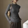 High Stretch Solid Color Round Neck T-shirt for Women Slim Fit Long Sleeved T-shirt Top