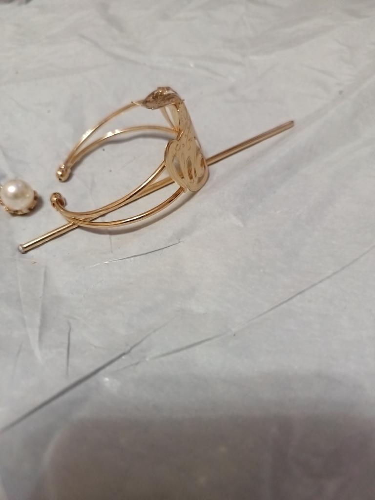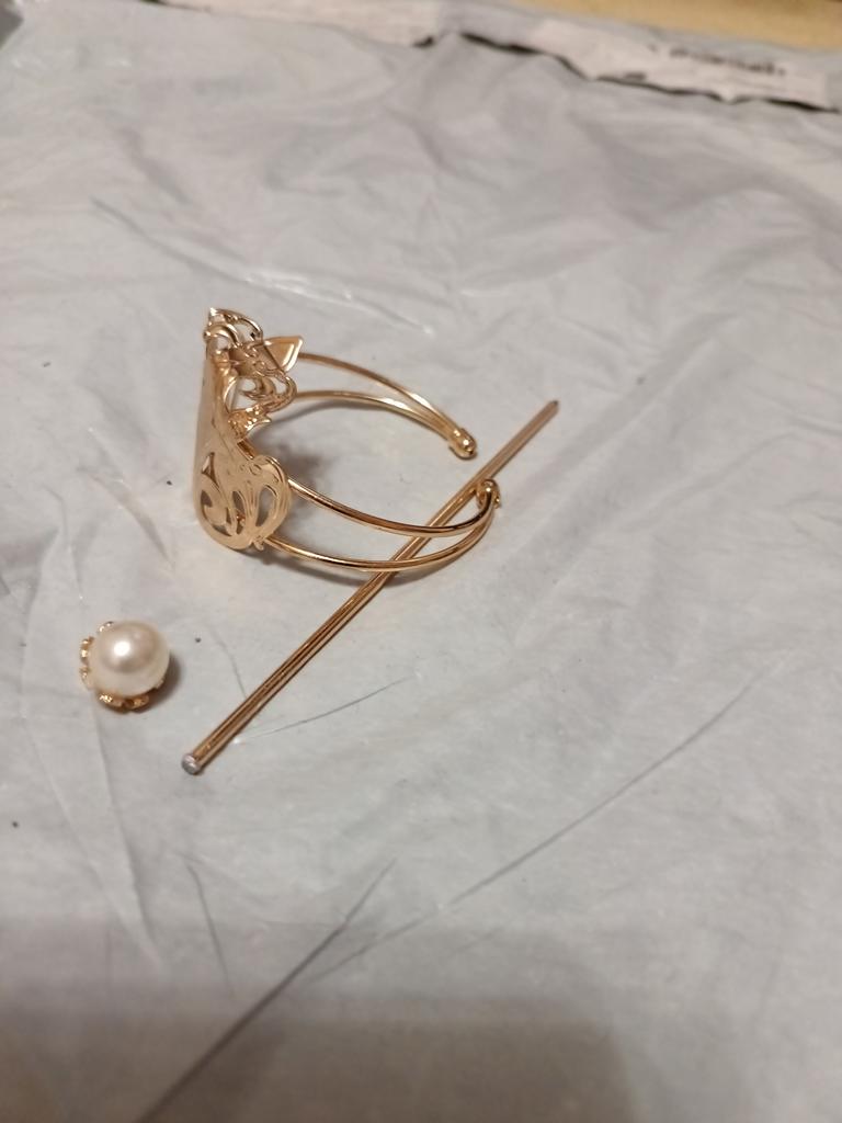 It could be a beautiful hair ornament, but the material is of poor quality, very thin, it was assembled with wire, which broke. One wing of the ornament is completely bent and half broken.