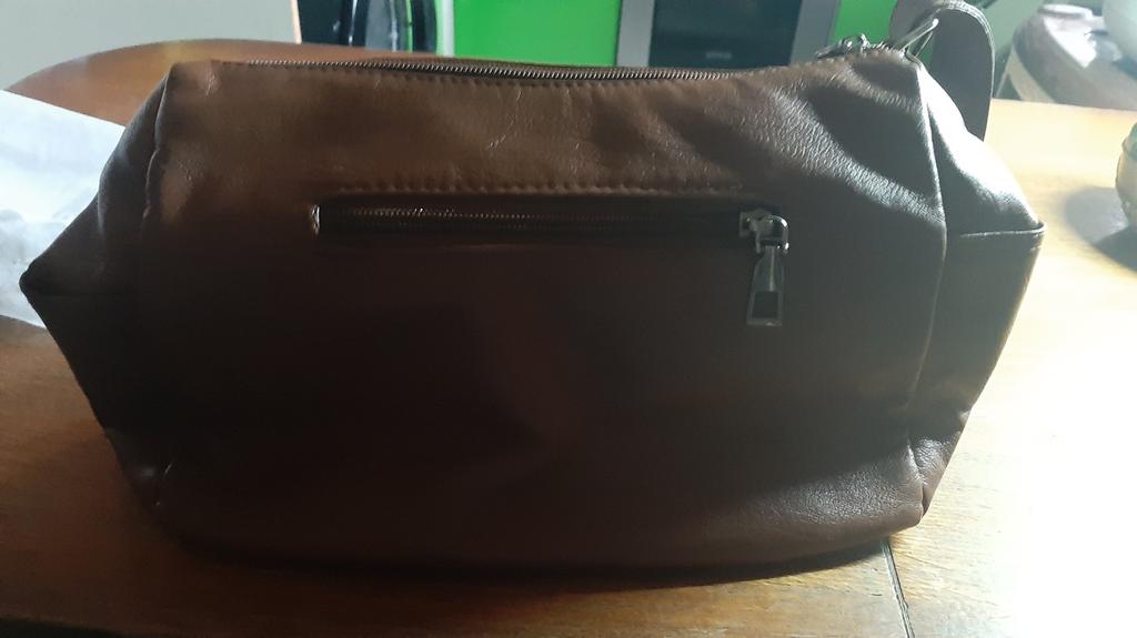 The appearance is stylish. According to the photo, it looks much larger. The annoying part is that the material is very soft, there is no reinforcement even at the bottom, there is a risk of rubbing it with sharp corners of document covers, books or keys.