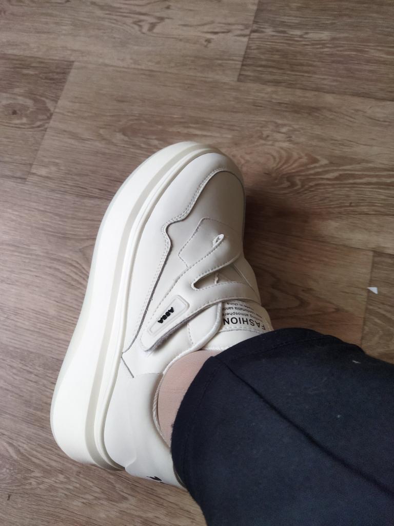 Sneakers 🤍 Interesting design, platform, white color - a cool pair. The quality is good, they are made neatly, there is no foreign smell.. Looks very good on legs. Size 39 fit a foot of 24.5 cm, but there is no extra space.. Stylish. Unusual. I recommend 🤗