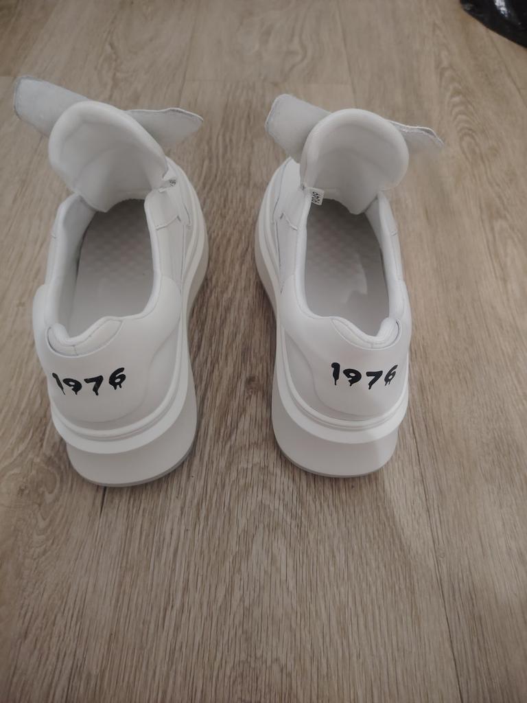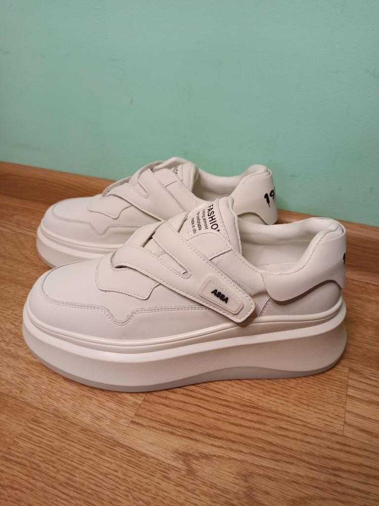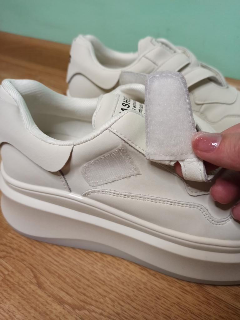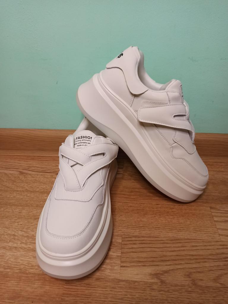 🌺 White sneakers 👟 🌺Size range : 35-41. 🌺The sneakers are just super!!!🔥💓👍 Made very neatly, from genuine leather, fasten with Velcro which is very convenient. 🌺The sneakers have a platform sole that is 3 to 5 cm thick, stable. 🌺Size 39 fit perfectly for a 24 cm foot. 🌺The sneakers are of excellent quality and very comfortable.👍😘😘😘