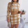 Women's 2-Piece Knit Sweater & Skirt Set Plaid Long Sleeved Crop Sweater Wrap Hip Skirt Set