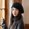 Hat Female Rabbit Fur Knitted Warm Wool Hat Solid Color Versatile Beret Literary and Retro Painter Hat