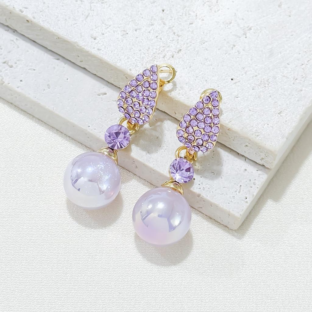 Violet Exquisite Super Flash Imitation Pearl Stud Earrings, Simple And Versatile Light Luxury Fashion Earrings Women, Trendy Ear Jewelry