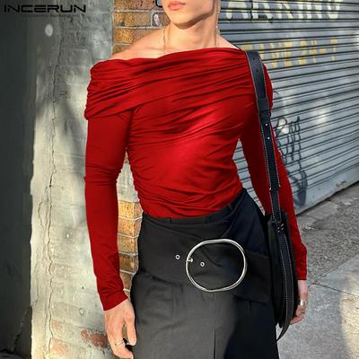 INCERUN Men Spring Long Sleeve Ruffled Off Shoulder Irregular Tops Party T-shirts