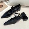 2024 Spring Style Pointed Toe Versatile Style Single Shoes Square Heel Women's Shoes Medium Professional Dress French High Heels