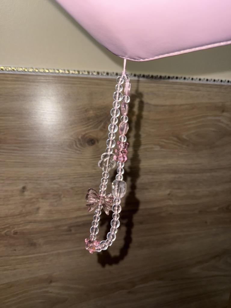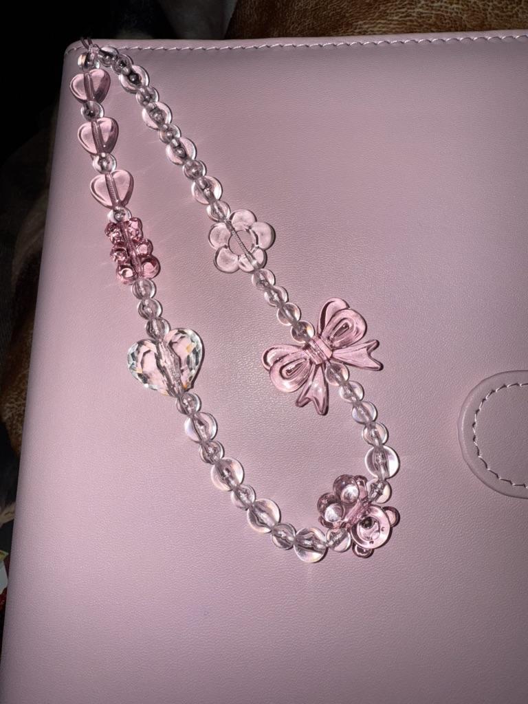 Pink Beaded Heart Bracelet Charm for Mobile Phone Cases