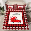 Valentine's Day Duvet Cover Set King Size,Red Truck Heart Tree Bedding Set,Rose Flowers Trailer Comforter Cover Romantic Gifts