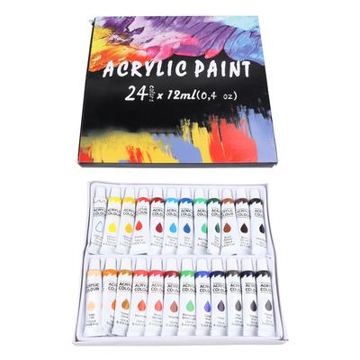 24 Color Gouache Tube Set 12ml Each Waterproof Strong Covering Power Acrylic Paint Set with Color