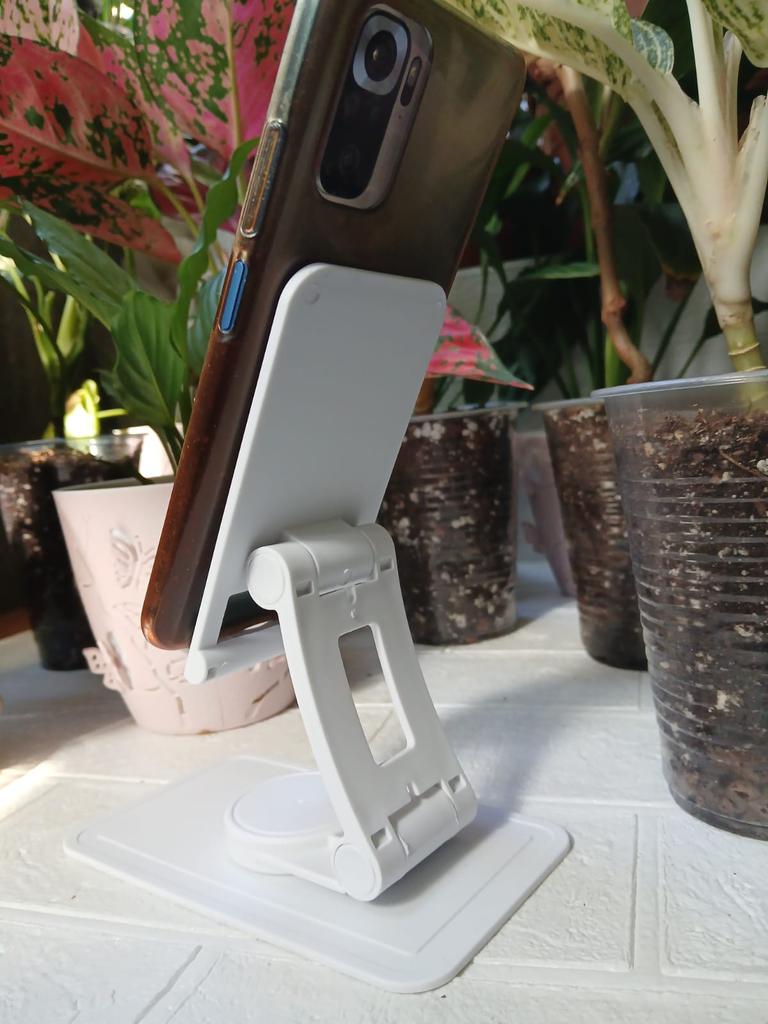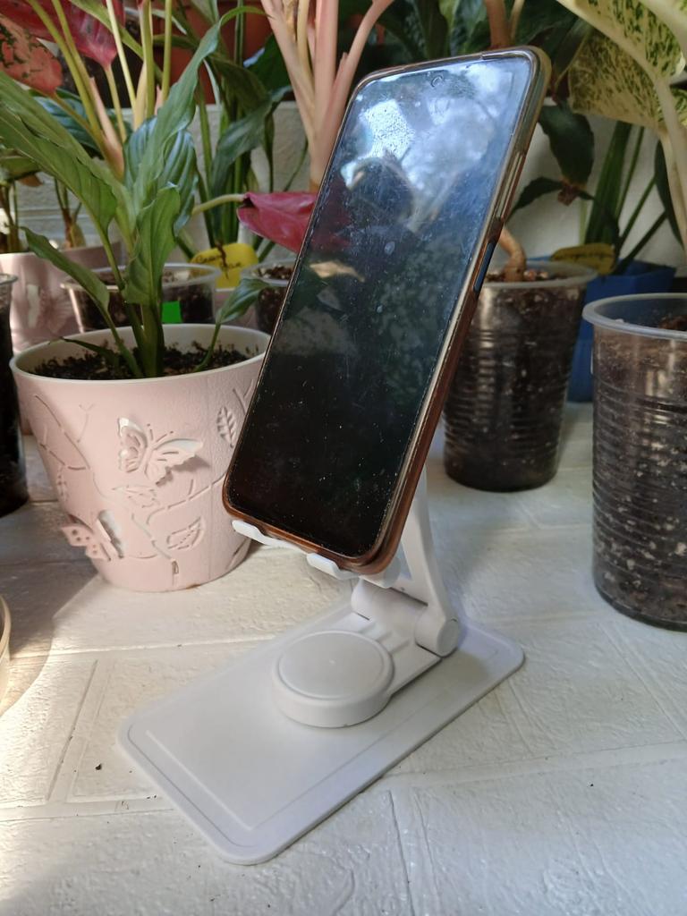 Tablet holder The holder rotates 360 degrees.. Mobile phone, tablet and more holder.. Foldable, has integrated support for a desktop holder, stand for phone and tablet. The stand is rigid and holds the phone and tablet well. Can be ordered in black or white It arrived to me with fast and secure delivery 📦 Highly recommended to buy!