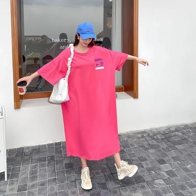 Loose-fitting Large-sized Women's Round-neck Short-sleeved T-shirt Dress, Long Laid-back Style Dress, Knee-length Sleeping Dress