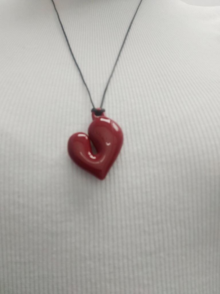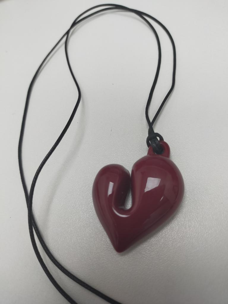 Original heart-shaped pendant ❤️ Lightweight. I don't know what it's made of, but it reminds me of the figures we made from salt dough in childhood. It would dry and then we would paint it. Black, thin cord. At the end, a bead that adjusts the length of the cord.