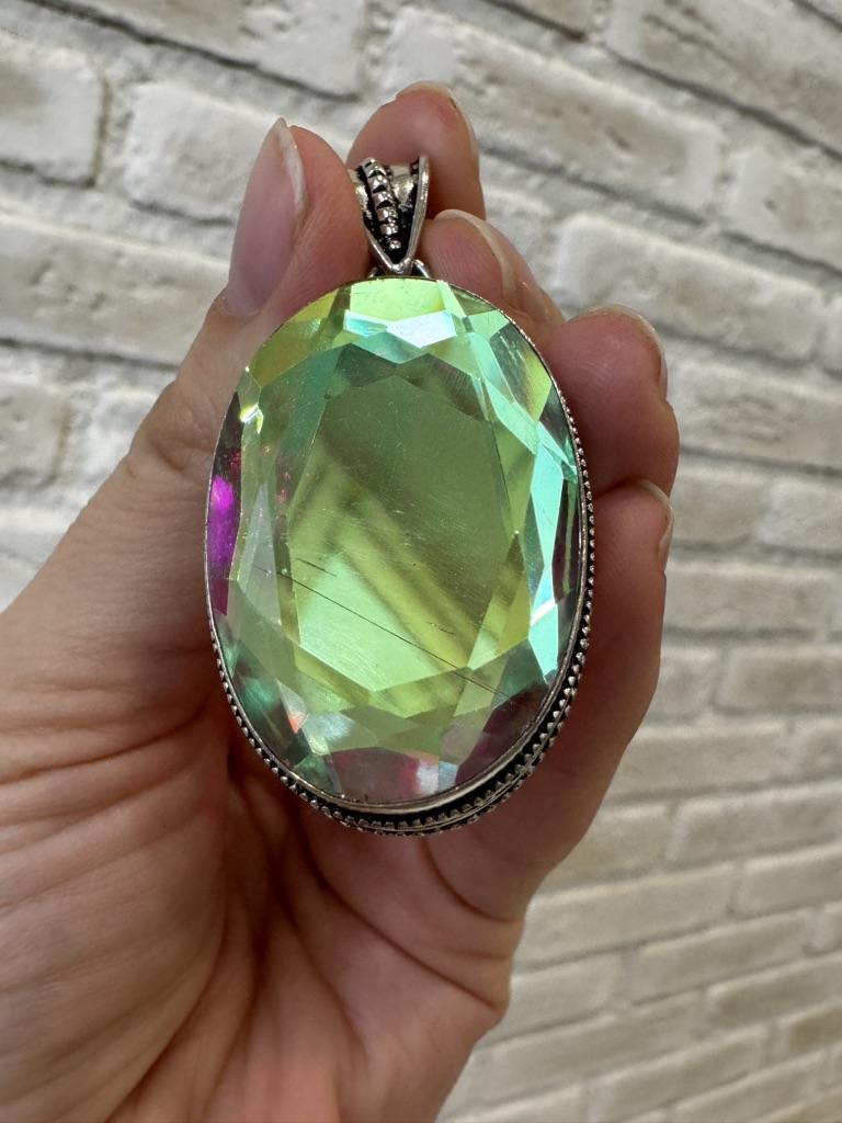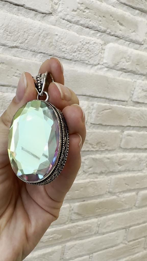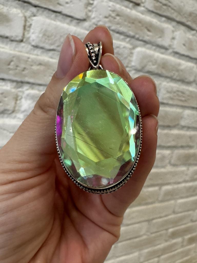 Natural Mystic Glass Gemstone 925 Sterling Silver Jewelry Pendant 2.36" F6v69