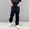 Unisex Black High-Waist Straight-Leg Jeans with American Retro Embroidery