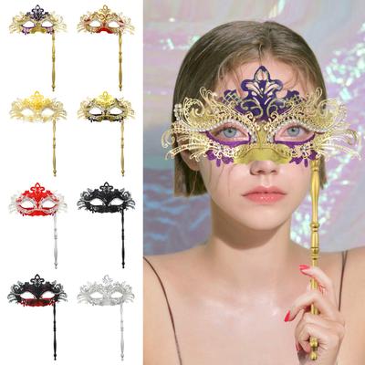 Fancy Party Masque Metal Masque with Handheld Stick Half Face Venetian Masque