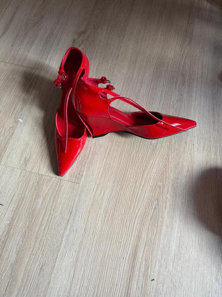 Spring New Red Pointed Wedge High Heels Women's Feeling Bun Toe Sandals A Line Buckle Mary Jane Single Shoes High Heels