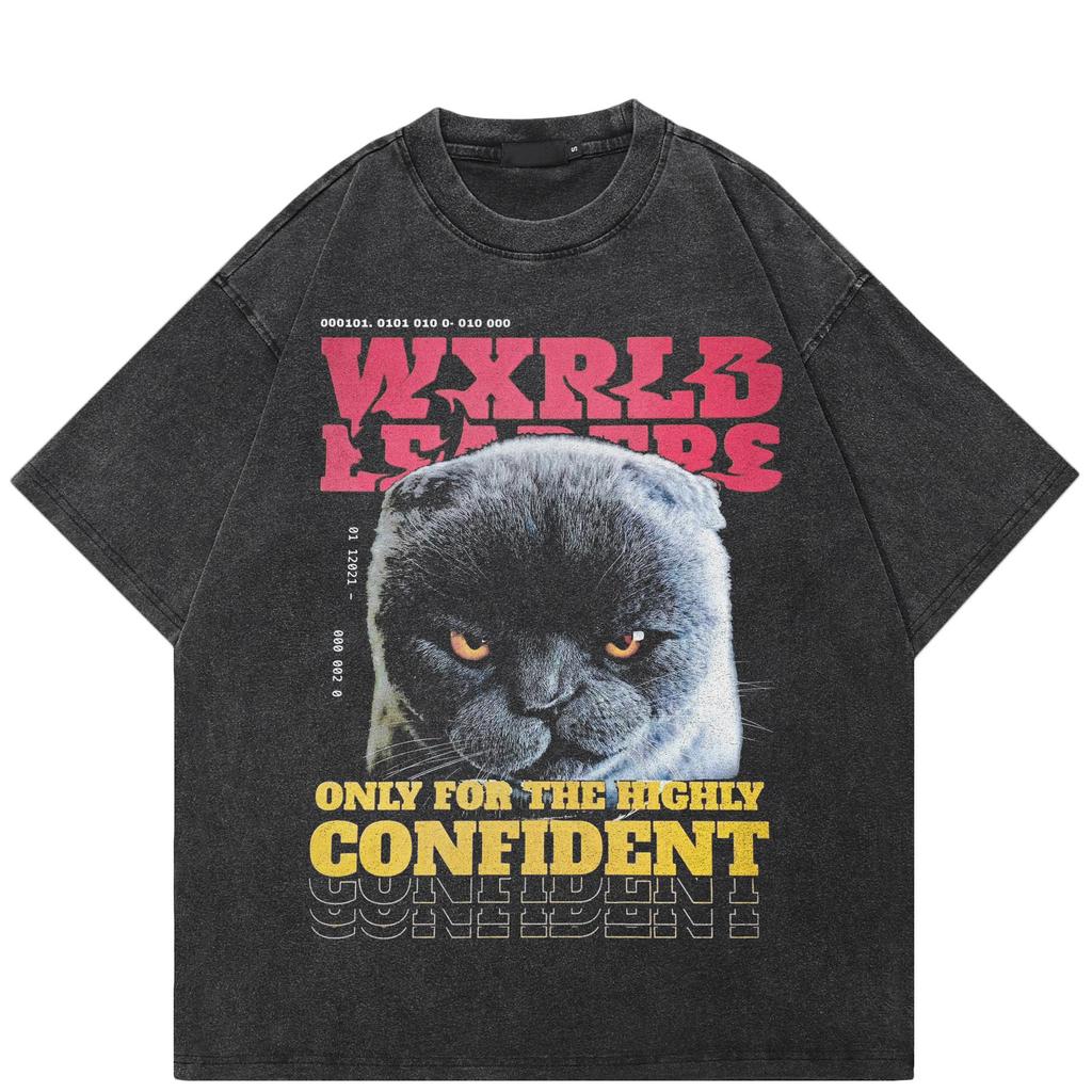 Streetwear British Shorthair Graphic T-Shirt Cotton Washed Black Tshirt Unisex Tops Tees Summer Short Sleeves T Shirt