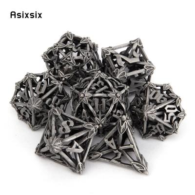 7 Pcs Silver Leaf Flower Metal Dice Hollow Metal Polyhedral Dice Set Suitable for Role-Playing RPG Board Game Card Game