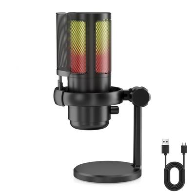 USB Condenser Gaming Microphone for PC with RGB Lighting, Touch Mute, Noise Reduction, Unidirectional Pitch, Recording, Pop Filter, and Microphone Sta