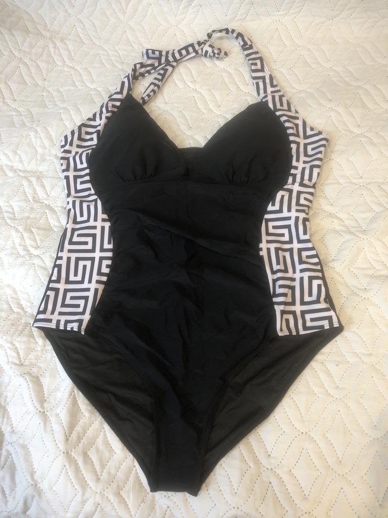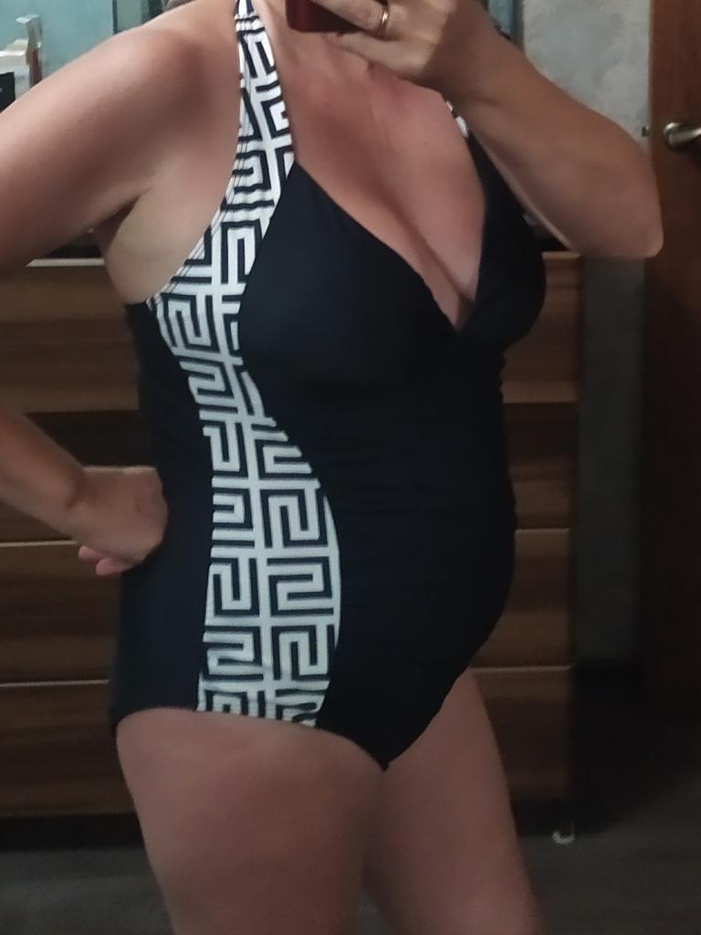 Cool swimsuit, size L fit a 46-48, accentuates the figure!