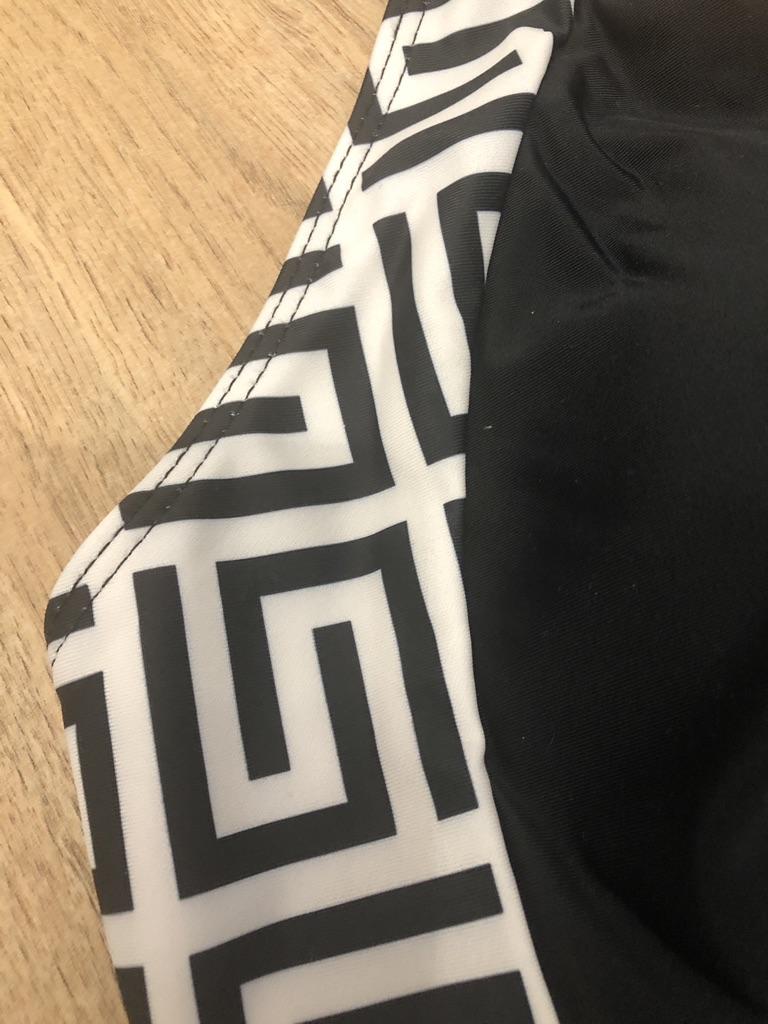 The swimsuit is of good quality. The seams are even, the fabric is excellent. It looks great and the style is interesting.