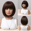 Short Straight Bob Synthetic Wigs with Bangs for Women Brown To Blonde Wig Cosplay Party Daily Heat Resistant Fiber Hair