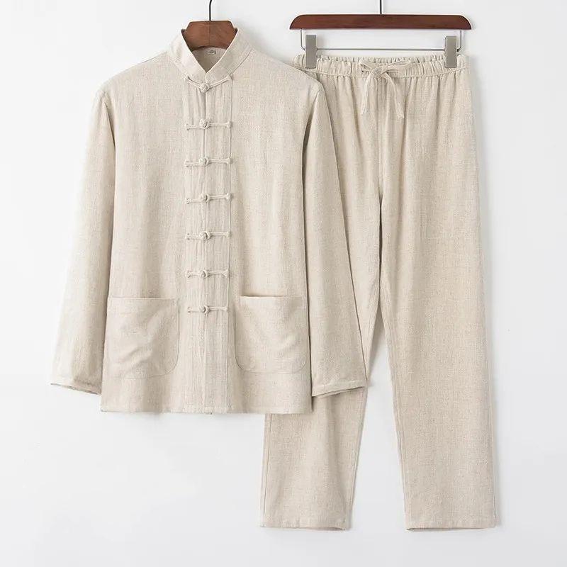 Chinese Style Cotton and Linen Men's Summer Tang Suit Men's Fashion Temperament Chinese Style Plate Buckle Suit