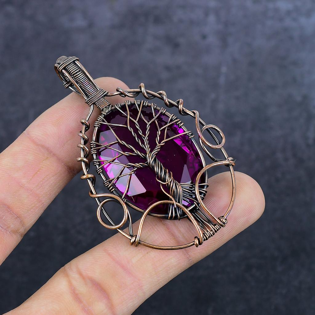 Pink Rubillite Handmade Copper Wire Wrap Jewelry Pendant 2.64" L5r18