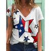 2024 New Arrival Women's Fashion T-shirt Loose Casual Short Sleeve V-neck 3d Print American Independence Day Theme Plus Size T-shirt 2025 New