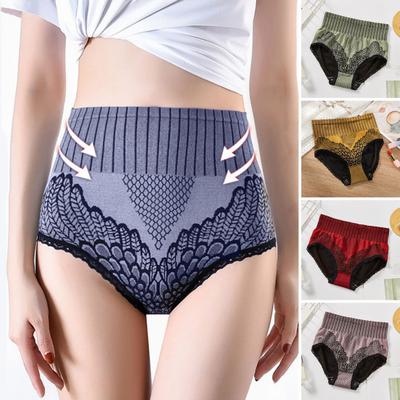 Women Underpants High Waist Tight Breathable Print Elastic Tummy Control Anti-septic
