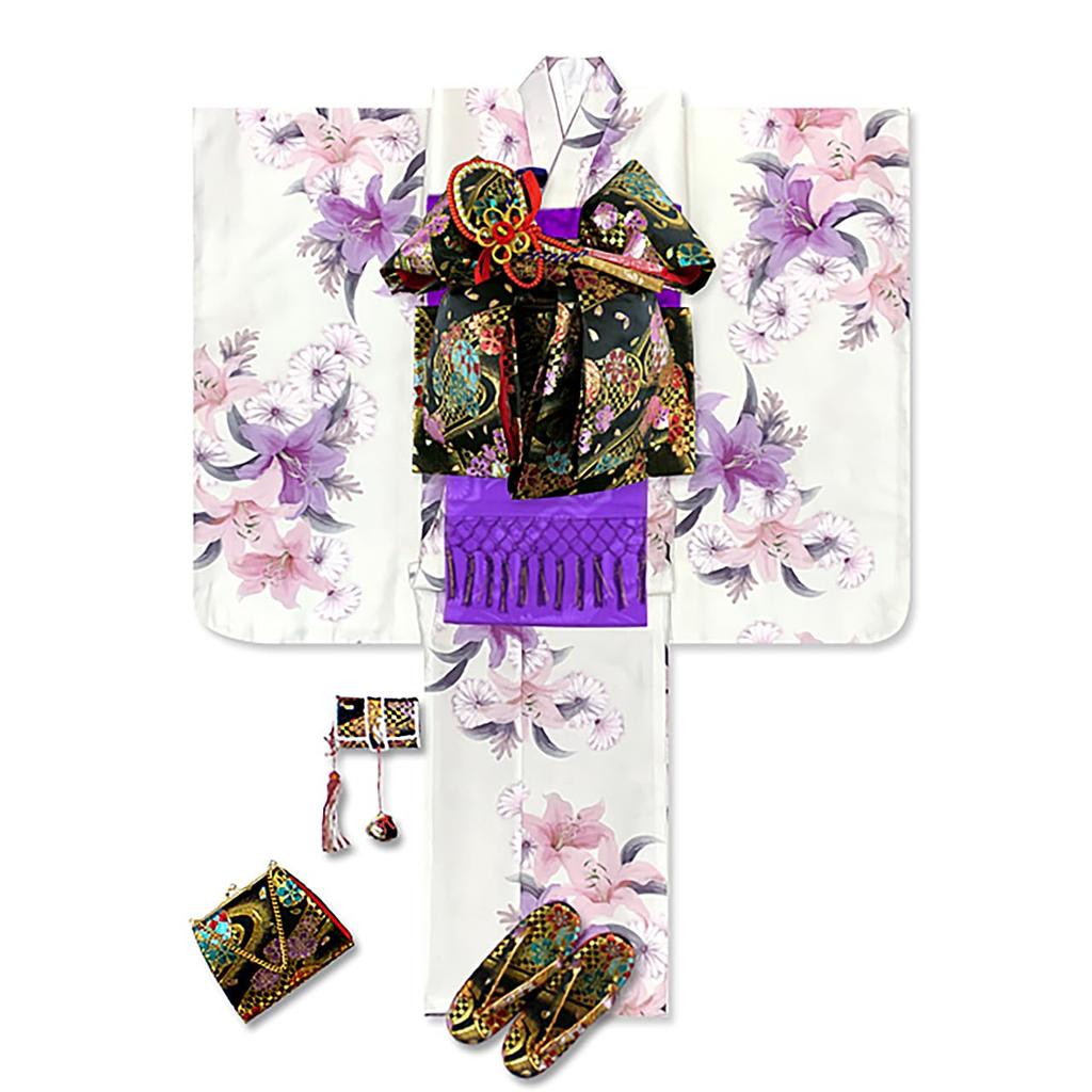 The kimono is made of easy-care polyester. How about this for Shichi-Go-San or as a special occasion wear?