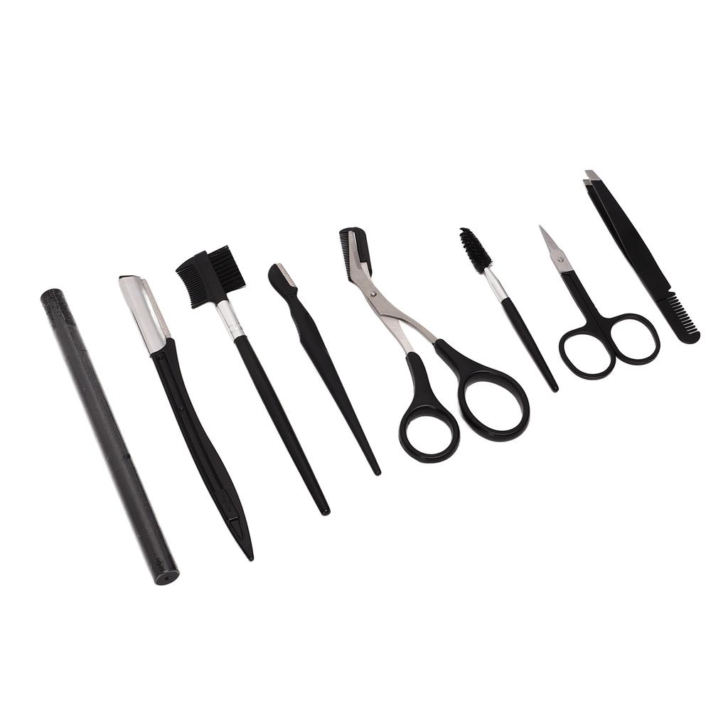 8 Pcs Eyebrow Grooming Kit Black Rustproof Stainless Steel Eyebrow Trimming Kit Beauty Tools with