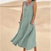 Women Coton Linen Sundress Summer Female Sleeveless Double Big Pocket Loose Sand Beachwear Long Dress Oversized S-5XL LRFZ-818
