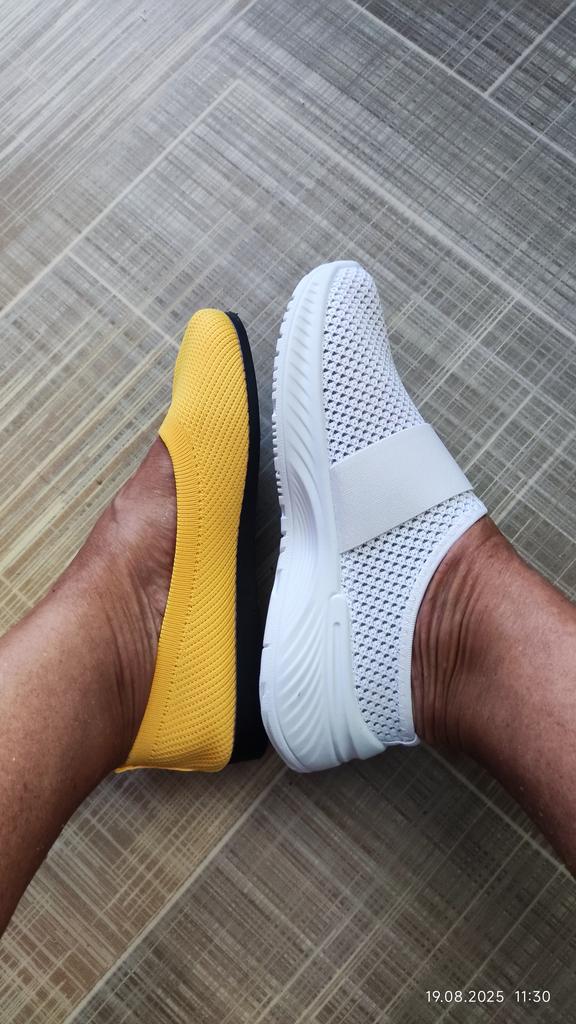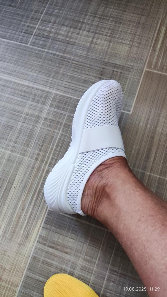 Women's White Slip-On Casual Sneakers - Breathable Fabric Netted Slippers