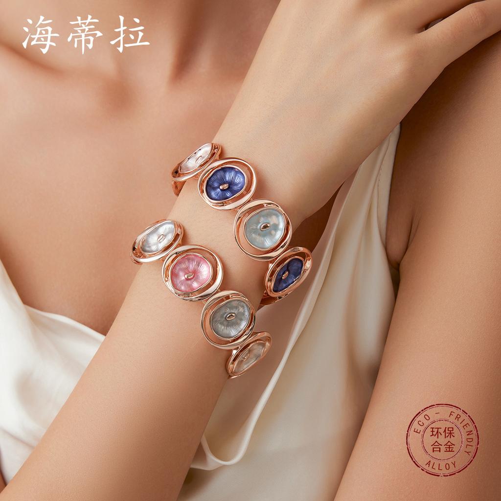 Color Painting Oil Round Hollow Flower Bracelet, Small Fresh Lady Summer Flower Elastic Bracelet