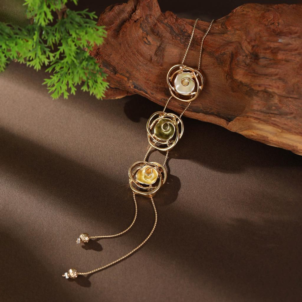 New Color Painting Oil Hollow Rose Fringed Pendant Sweater Chain, Women's High-end Long Necklace