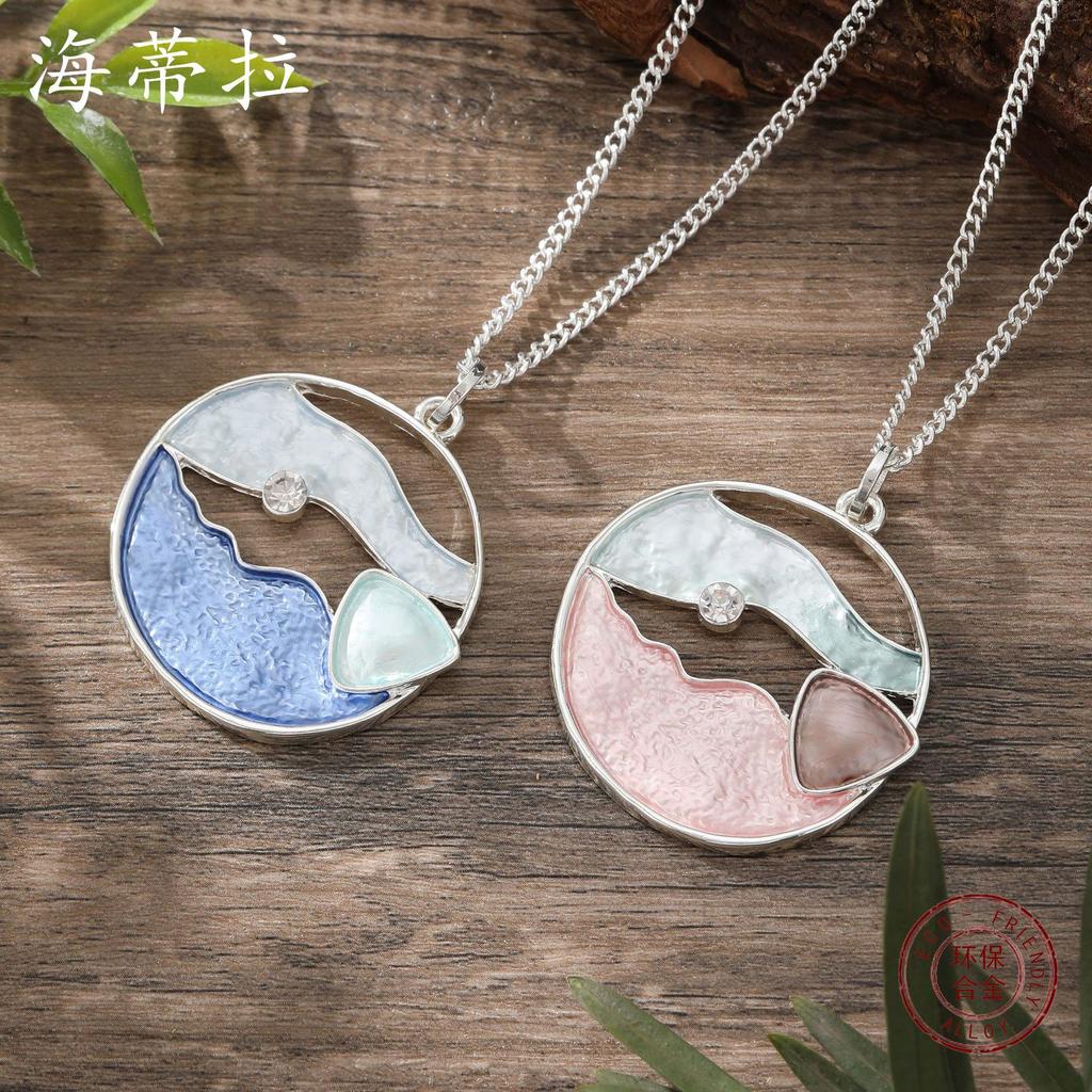 New Color Painting Oil Round Hollow Wave Beach Pendant, Summer Small Fresh Women's Versatile Necklace
