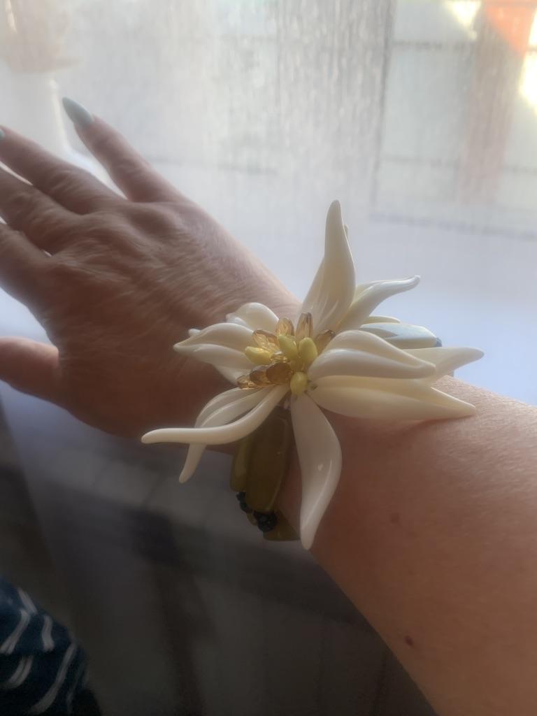 The choker necklace is magnificent. Beautiful. The flower is large. For summer wear.