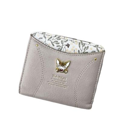 Chanfee Bifold Wallet with Front Cute Cat Wreath and Character Embossed Design Women's Zipper-Around Design, Pocket, Pattern, Belt, (Brown)