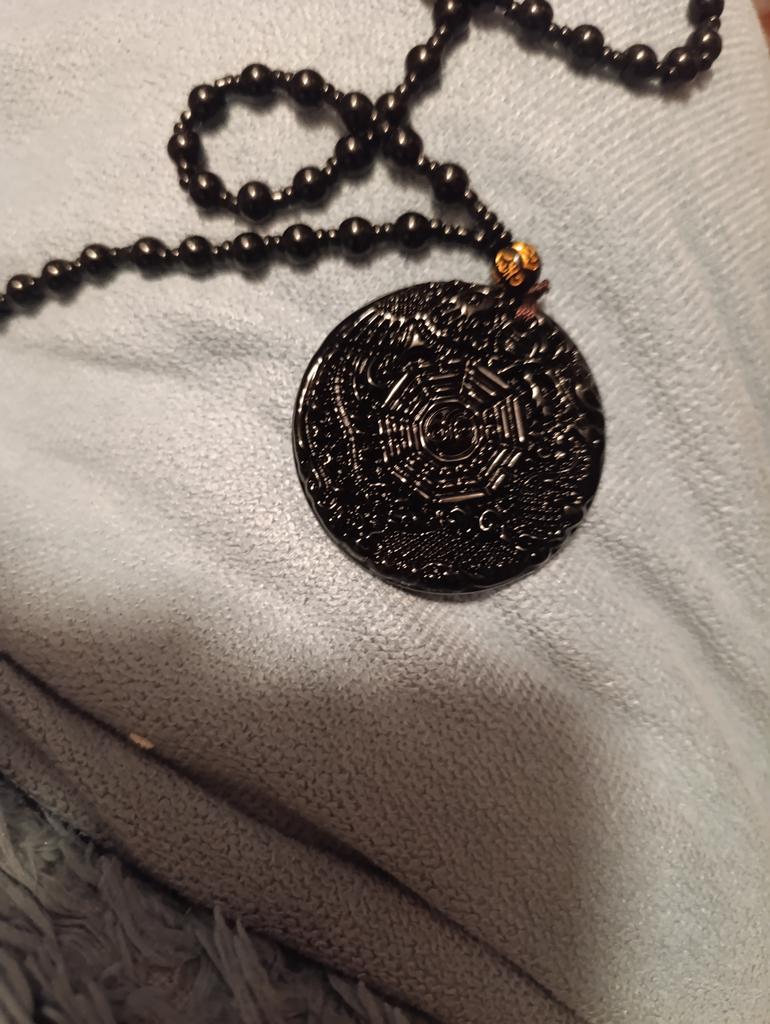 Natural Black Obsidian Hand Carved Chinese Dragon Phoenix Bird Amulet Bagua Necklace For Women Men Luck Mascot Amulet Pendant